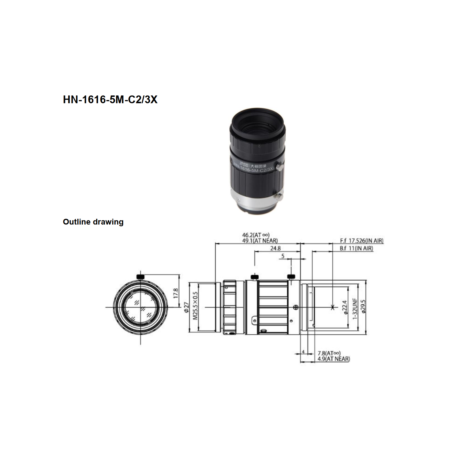 With its diameter of φ29.5mm, the lens fits limited space requirements.