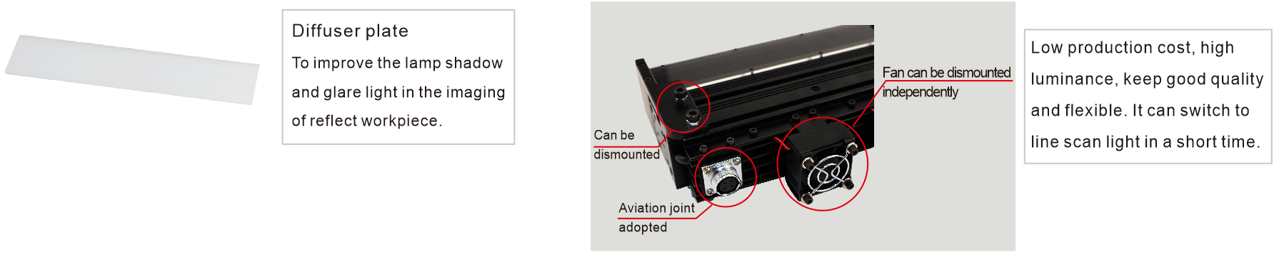 Special cylindrical condenser lens is adopted to gather high brightness LEDs into a high brightness linear light; Optimal uniform light for shiny and reflective surfaces.