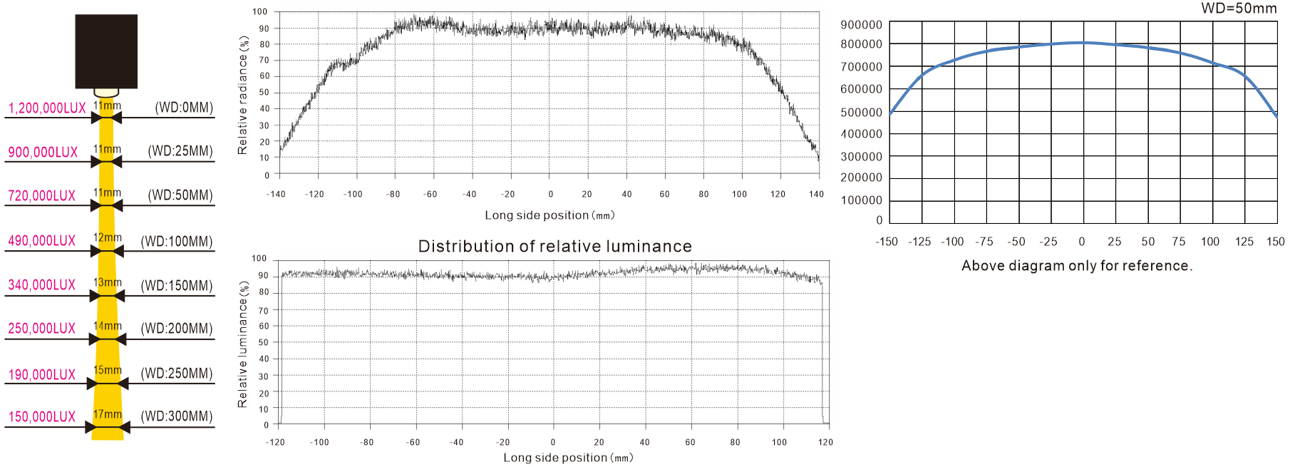 Illumination property diagram (LTS-2LIN300-W model) / Distribution of Relative irradiance / Lateral characteristic diagram: