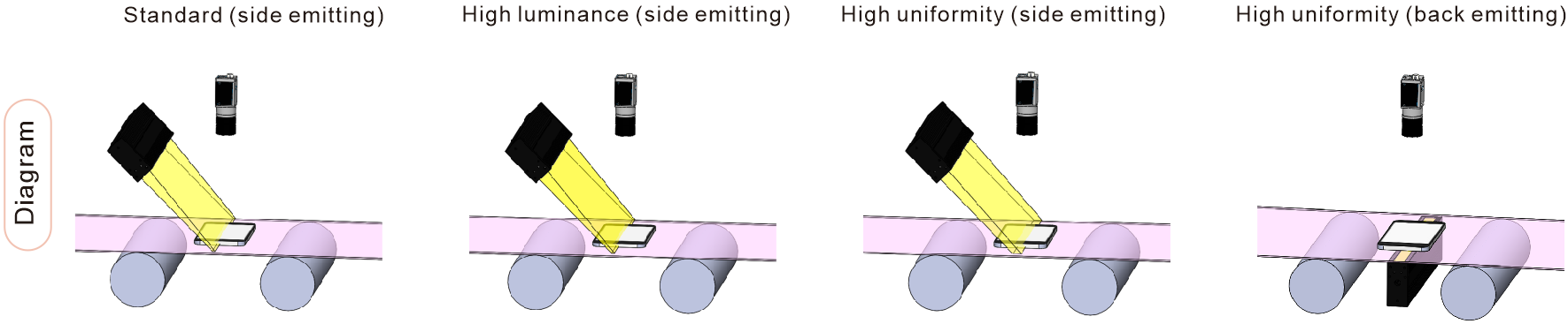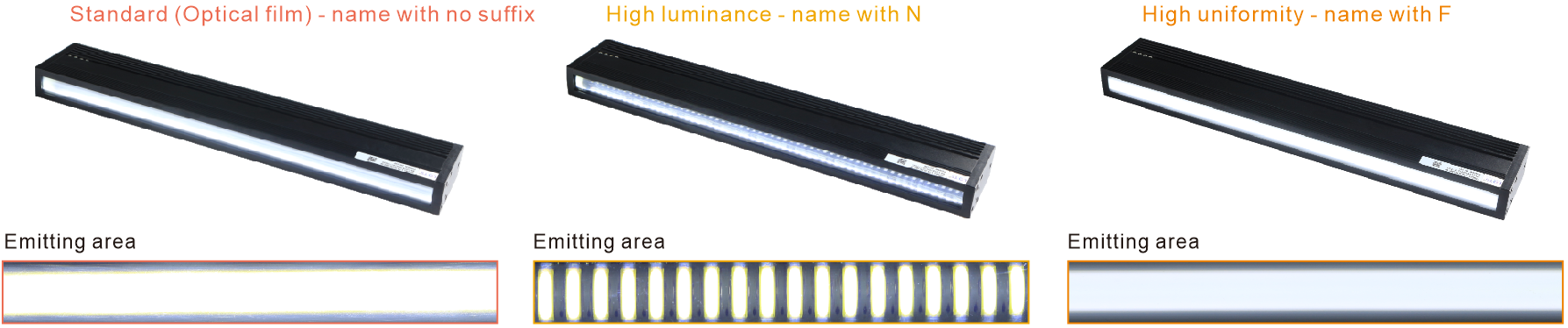 Standard model for extensive applications, high uniformity model for bright FOV, and high luminance model for dark FOV.