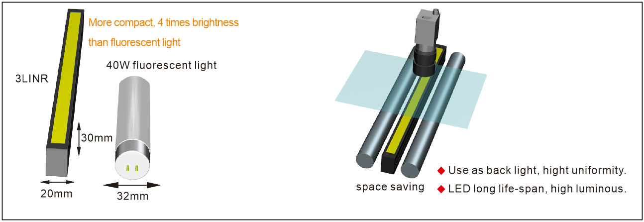 High brightness up to 2 million illumination, can add optical film to improve uniformity, adapted to circuit board surface and battery coating inspection.