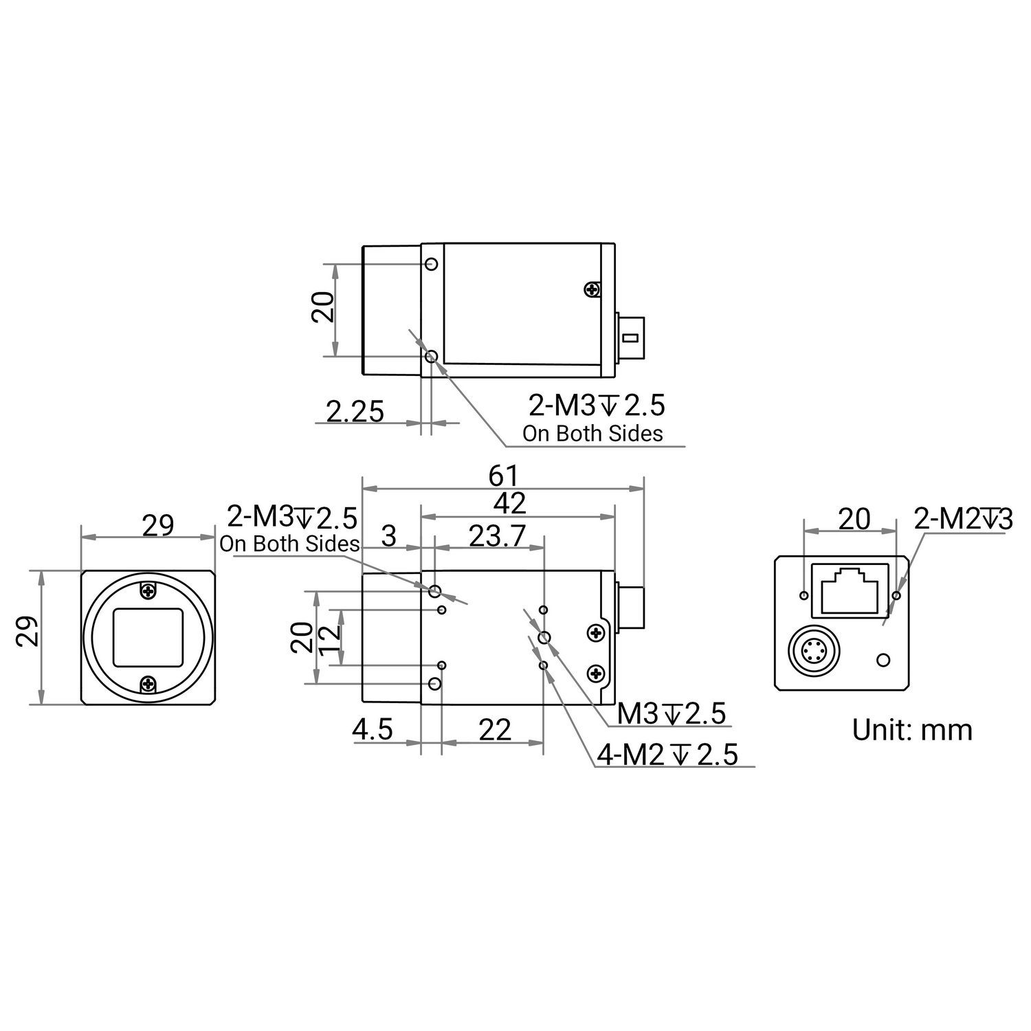 - Adopts GigE interface and max. transmission distance of 100 meters without relay.