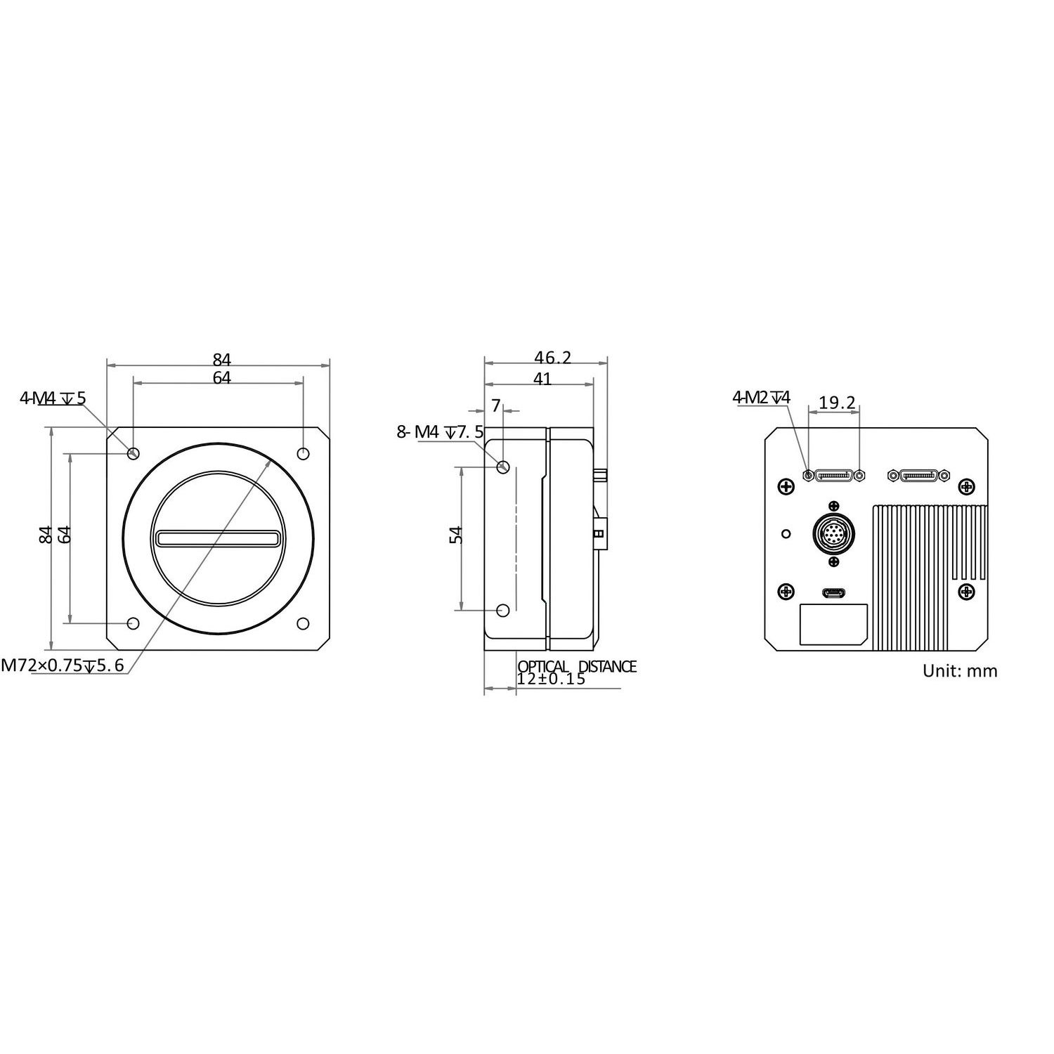 Mechanical | Lens mount | M72*0.75, optical back focal length: 12 mm (0.5″), applicable to F-mount via lens adapter |