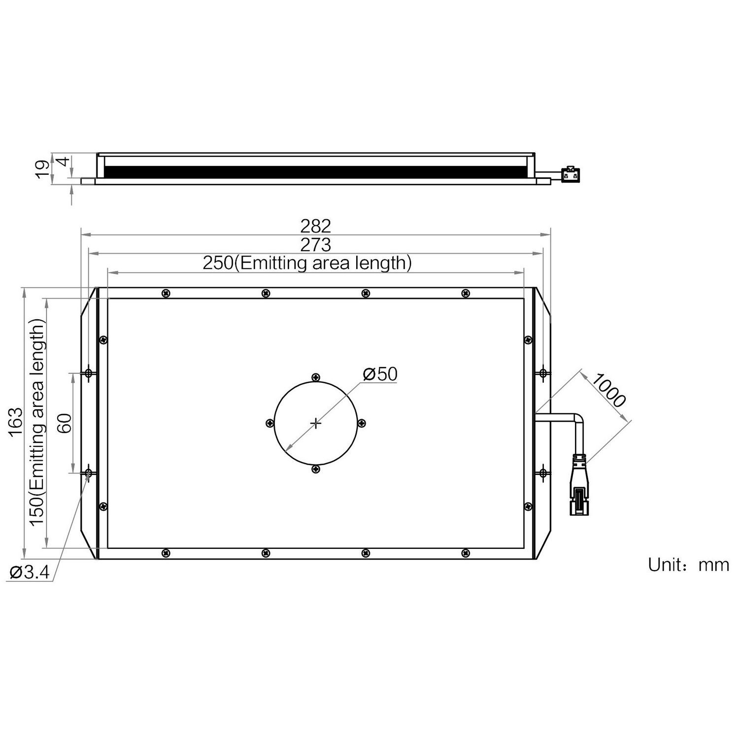 Emitting area dimensions | 250 mm × 150 mm | |