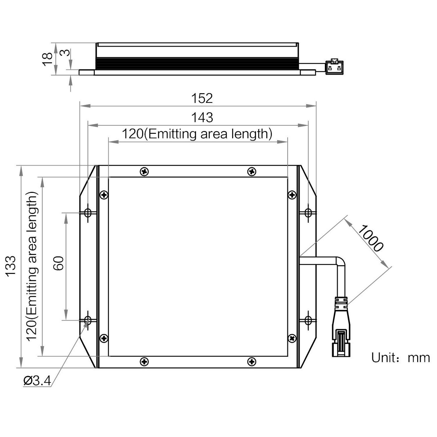 Emitting area dimensions | 120 mm × 120 mm | |