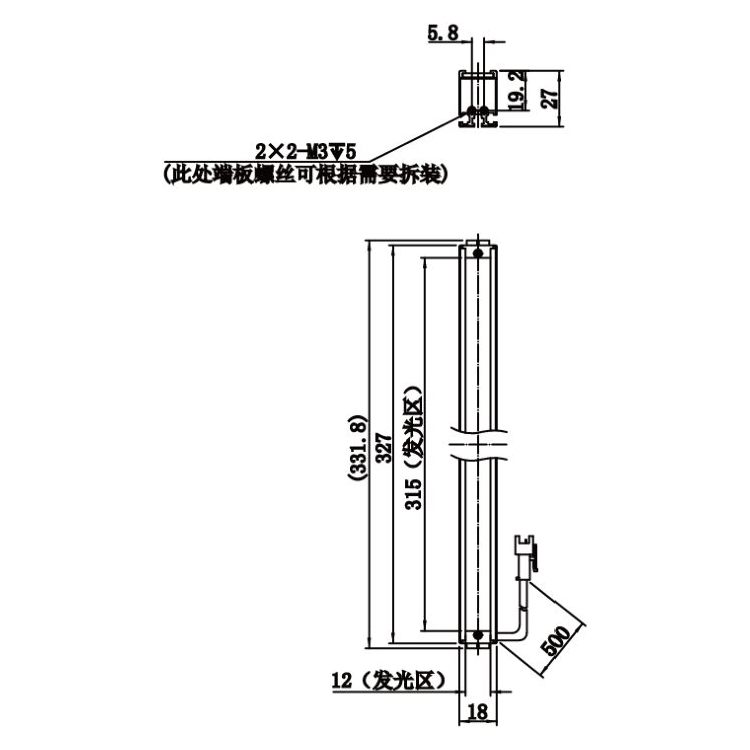 Light-emitting area diameter | 315 mm × 12 mm | |