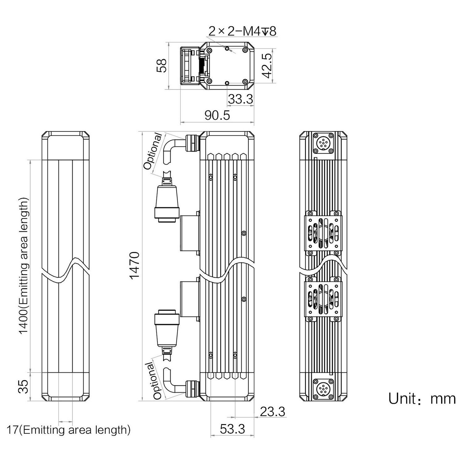 Emitting area dimensions | 1400 mm × 17 mm | |