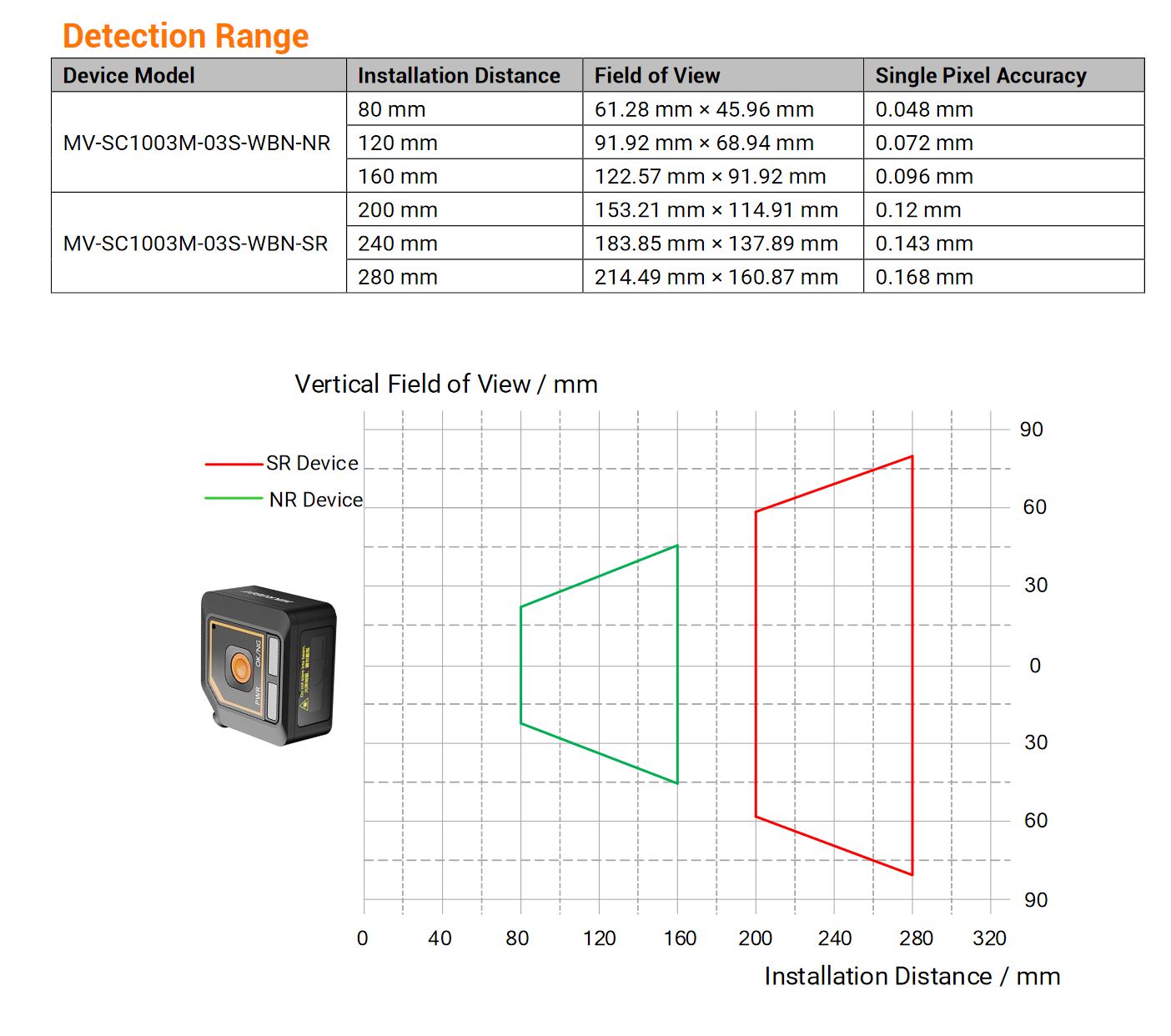 Working distance | MV-SC1003M-03S-WBN-SR: 240 mm MV-SC1003M-03S-WBN-NR: 120 mm |