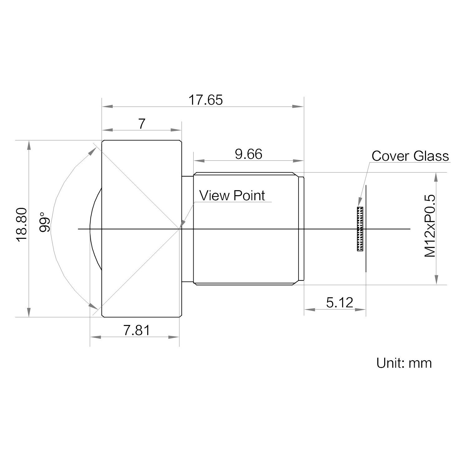 Type | 3.37mm, F2.8, 1/2″, 5MP Lens, M12-Mount | |
