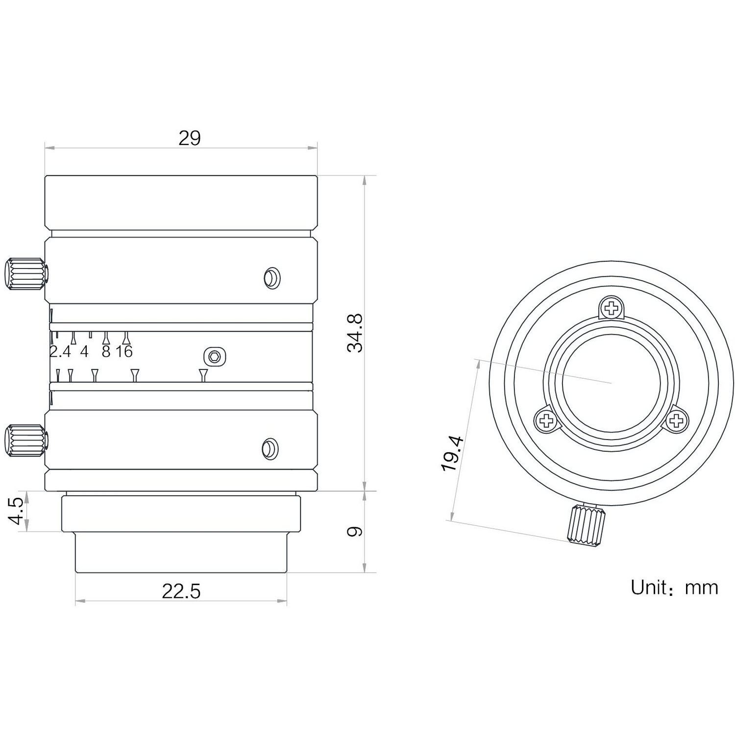 Type | 8mm, F2.4, 1/1.8″, 10MP Lens,C-Mount | |