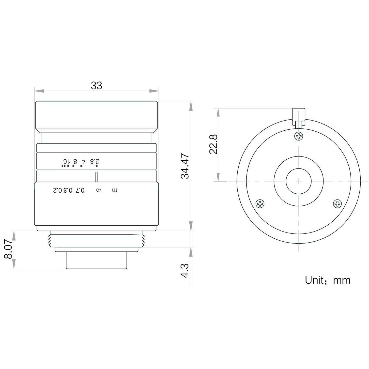 Type | 8mm, F2.8, 1/1.8″, 6MP Lens, C-Mount | |