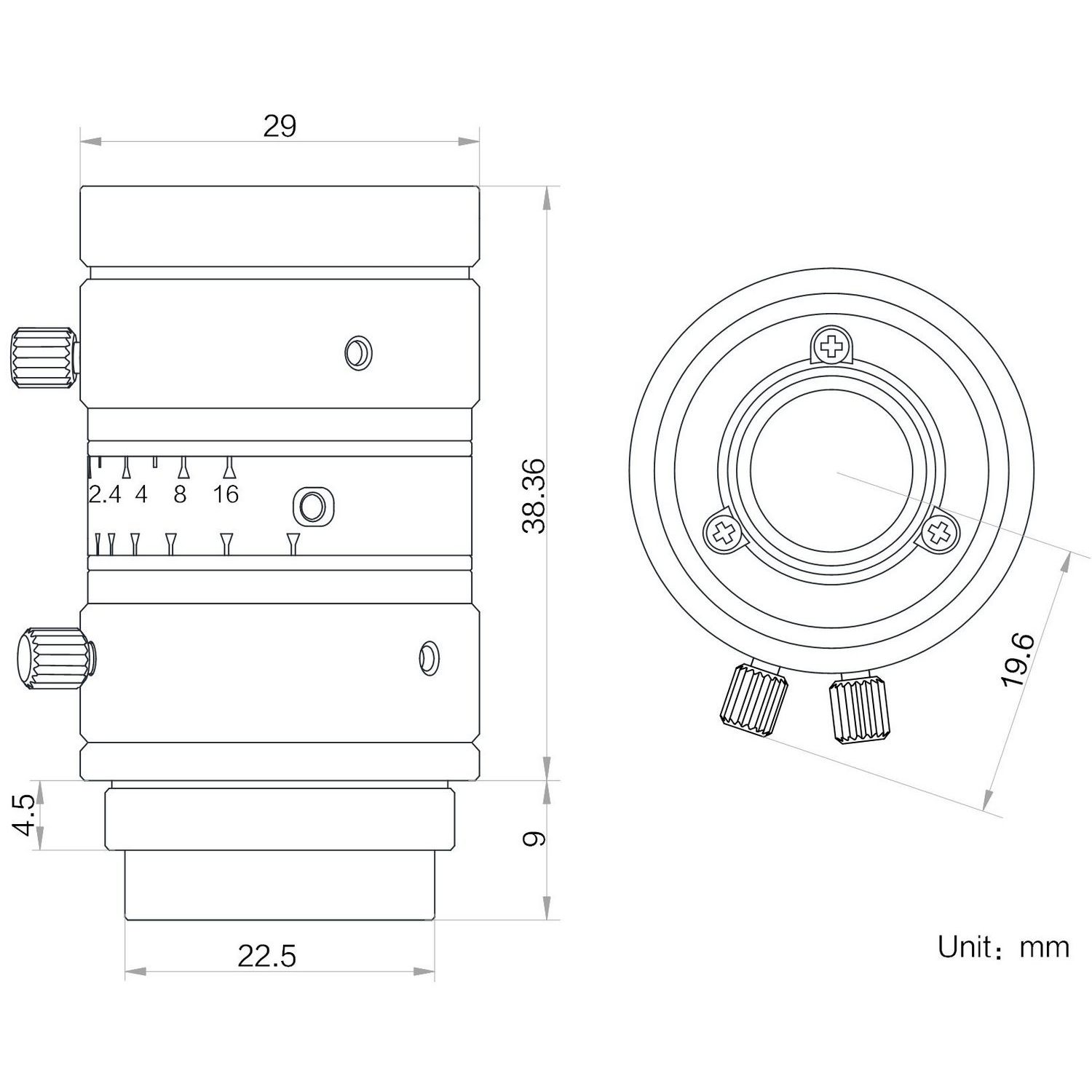 Type | 16mm, F2.4, 1/1.8″, 10MP Lens,C-Mount | |