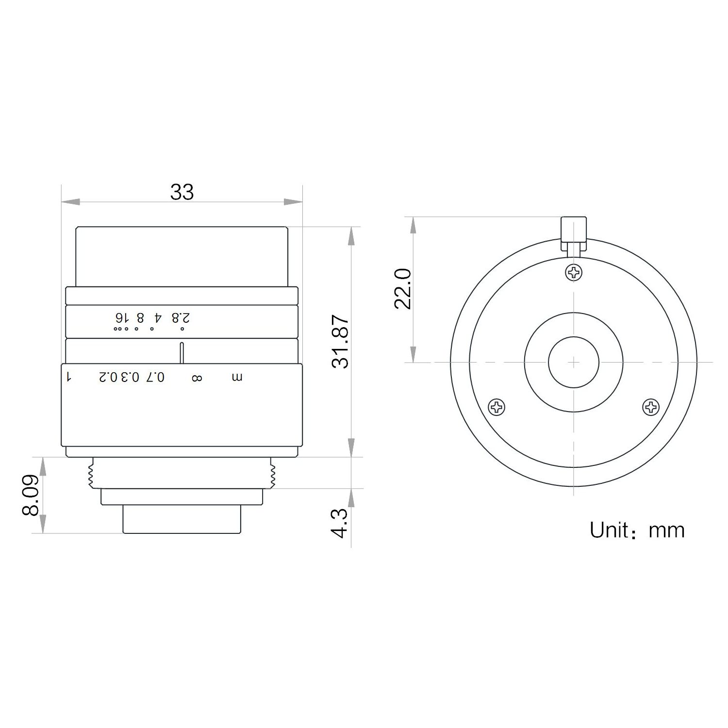 Type | 16mm, F2.8, 1/1.8″, 6MP Lens, C-Mount | |
