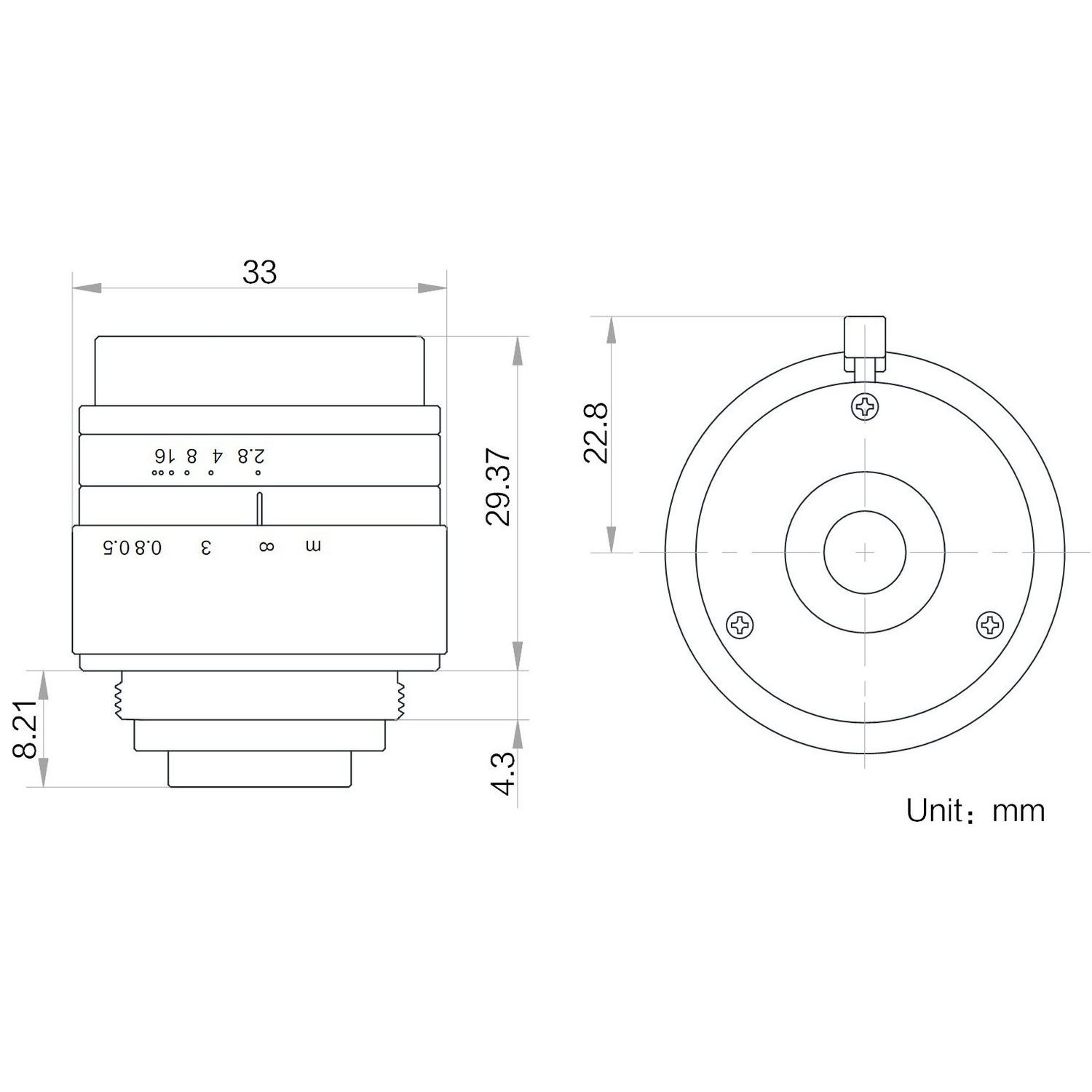 Type | 30mm, F2.8, 1/1.8″, 6MP Lens, C-Mount | |