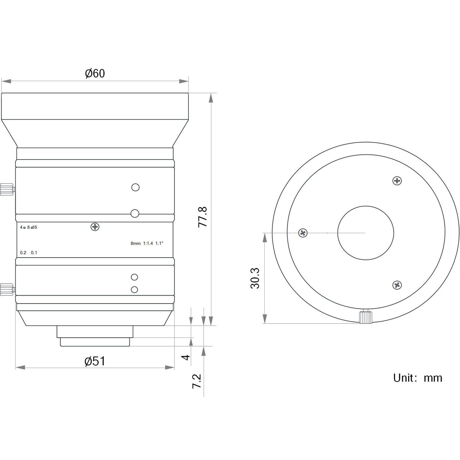 Type | 8mm, F1.4, 1.1″, 12MP Lens, C-Mount | |