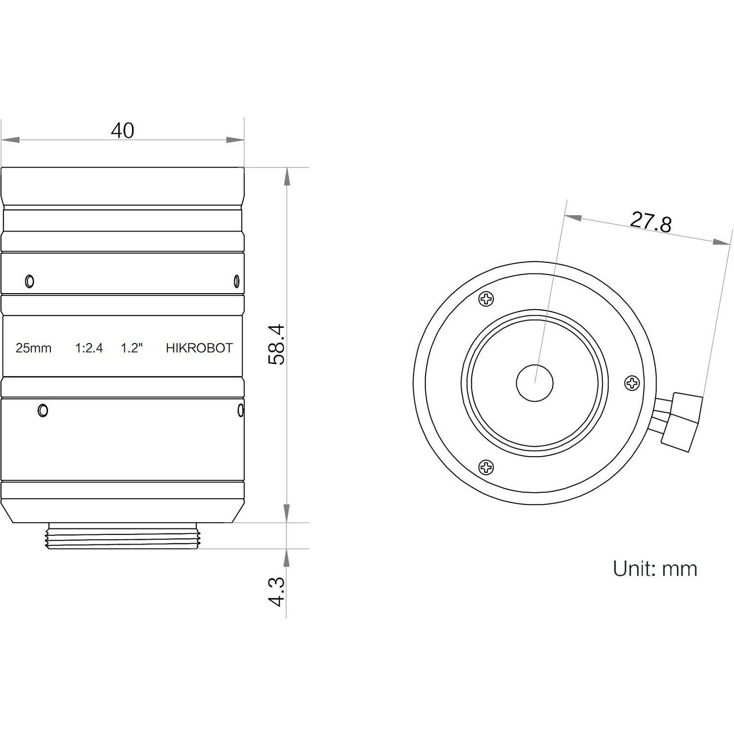 Type | 25mm, F2.4, 1.2″, 25MP Lens, C-Mount | |