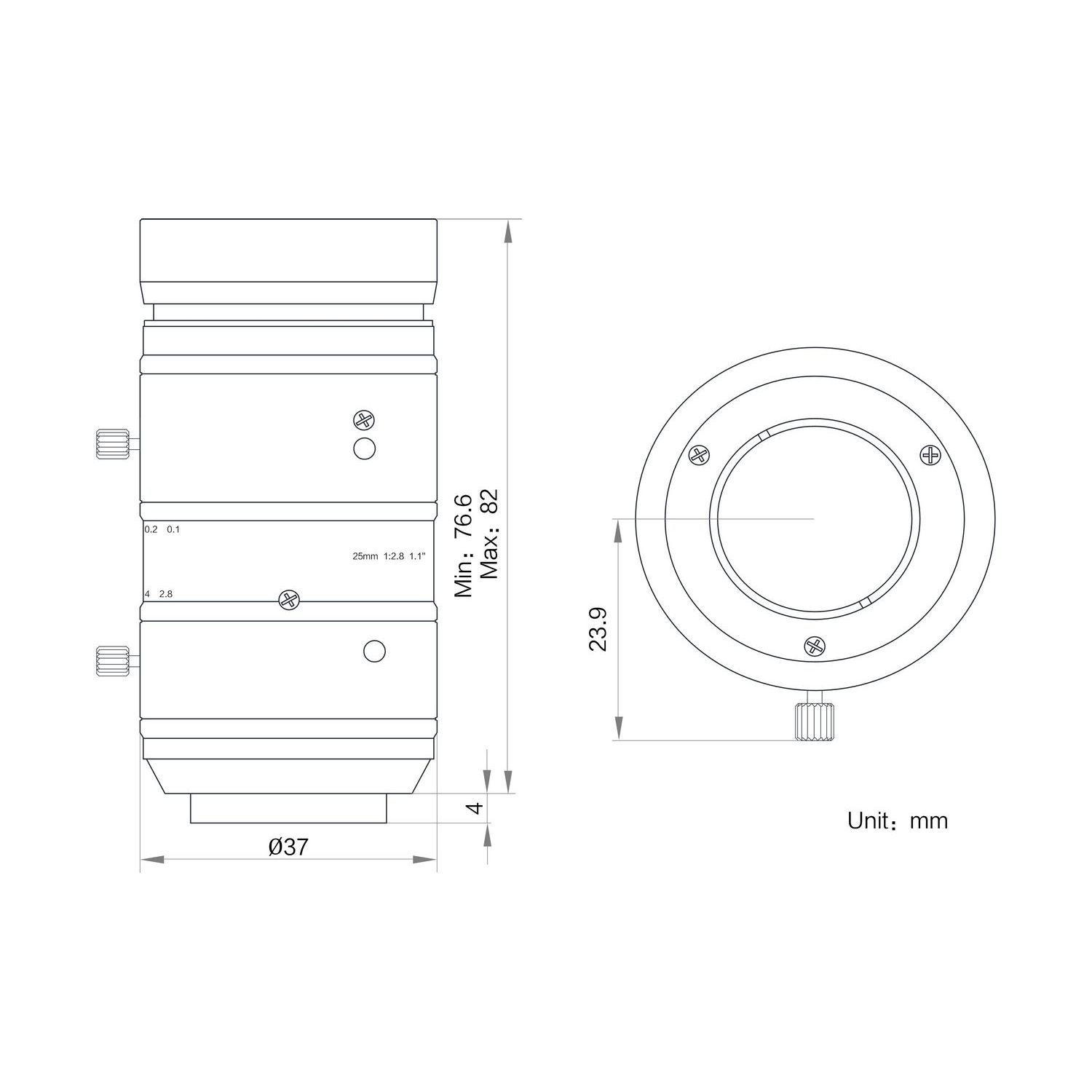 Type | 25mm, F2.8, 1.1″, 12MP Lens, C-Mount | |