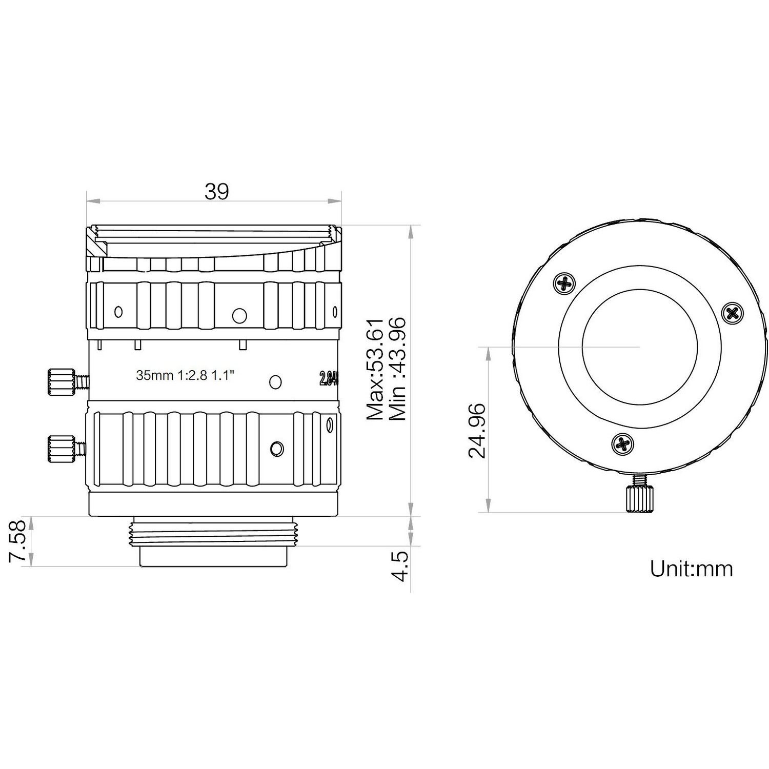 Type | 35mm, F2.8, 1.1″, 12MP Lens, C-Mount | |