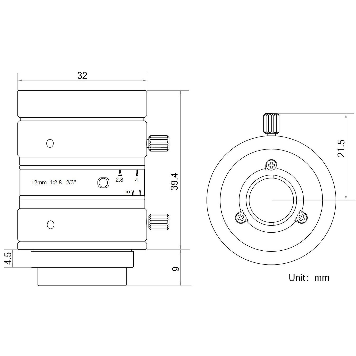 Type | 12mm, F2.8, 2/3″, 8MP Lens, C-Mount | |