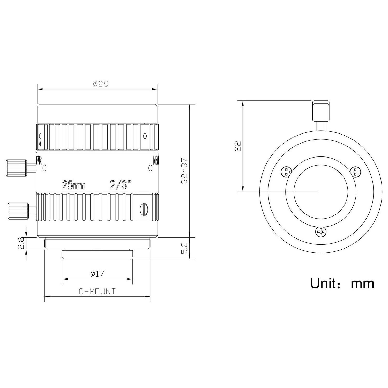 Type | 25mm, F1.8, 2/3″, 5MP Lens, C-Mount | |