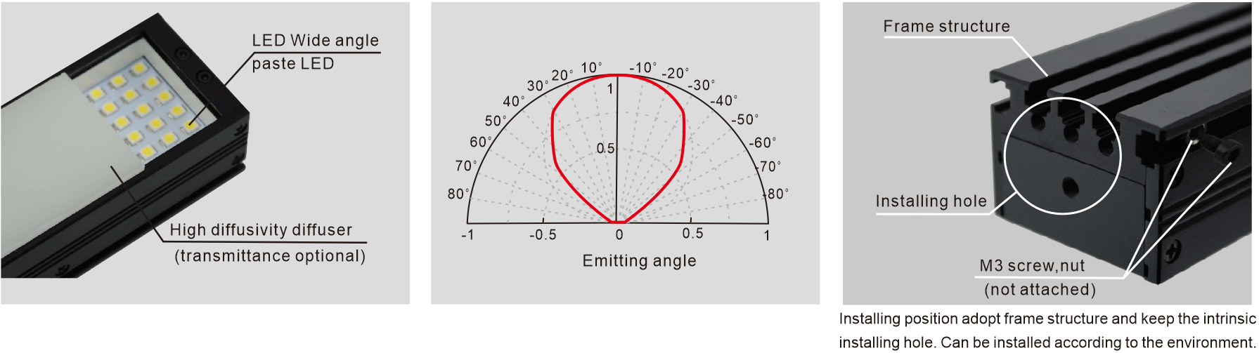 High-density chip LEDs mounted on a PCB; can be combined freely and widely applied; can be used as the back light in some cases; Special heat transferring design to keep long working life.