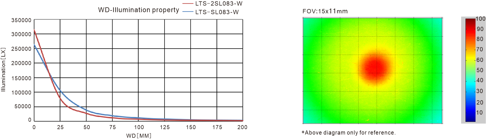 Illumination property diagram (LTS-2SL083-W/SL083-W model) & Uniformity (Relative irradiance):