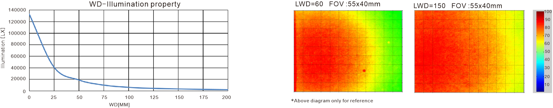 Illumination property diagram (LTS-3COH40-W model) & Uniformity (Relative irradiance):