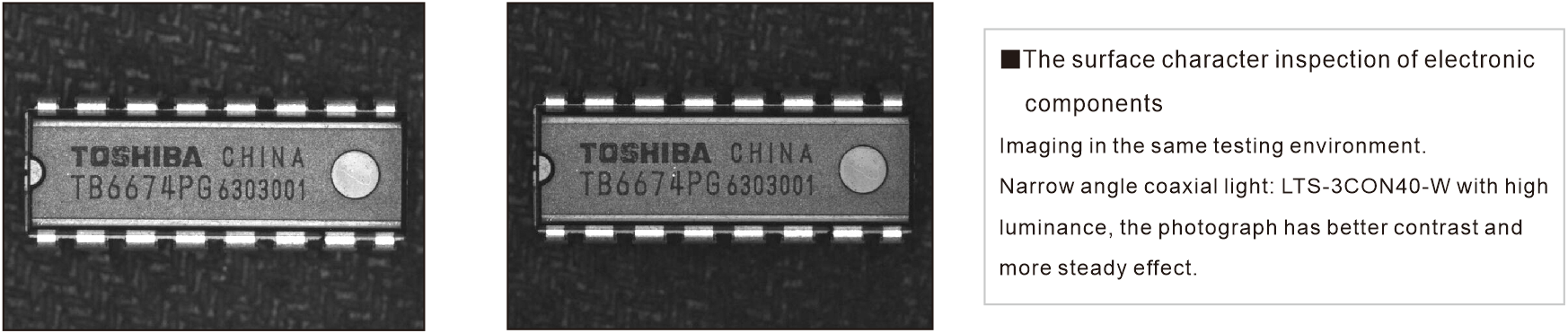 Effect contrast photograph - Narrow Angle Coaxial Light: LTS-3CON40-W / Coaxial Light: LTS-3COX40-W:
