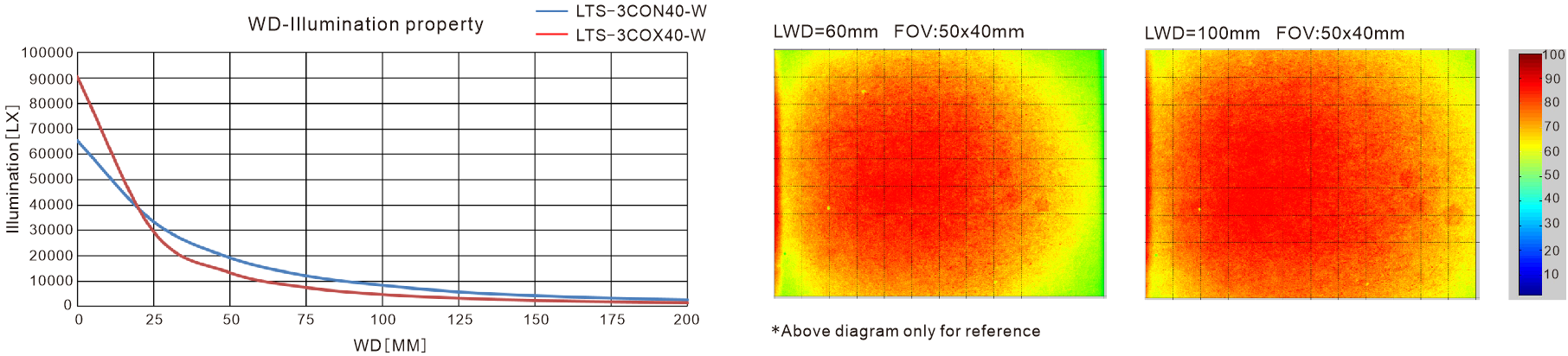 Illumination property diagram (LTS-3CON40-W/3COX40-W model) & Uniformity (Relative irradiance):