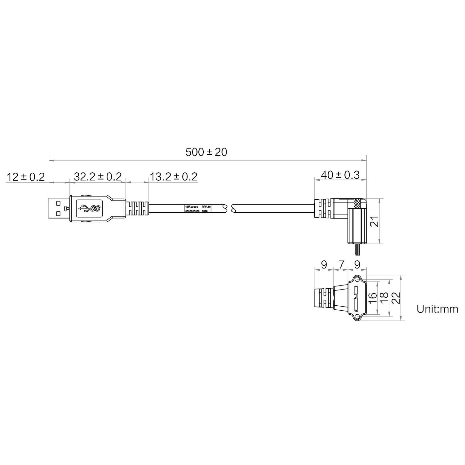 HIKROBOT Data Cable, Elbow USB3.0, Micro BM(down) to A male, 0.5m