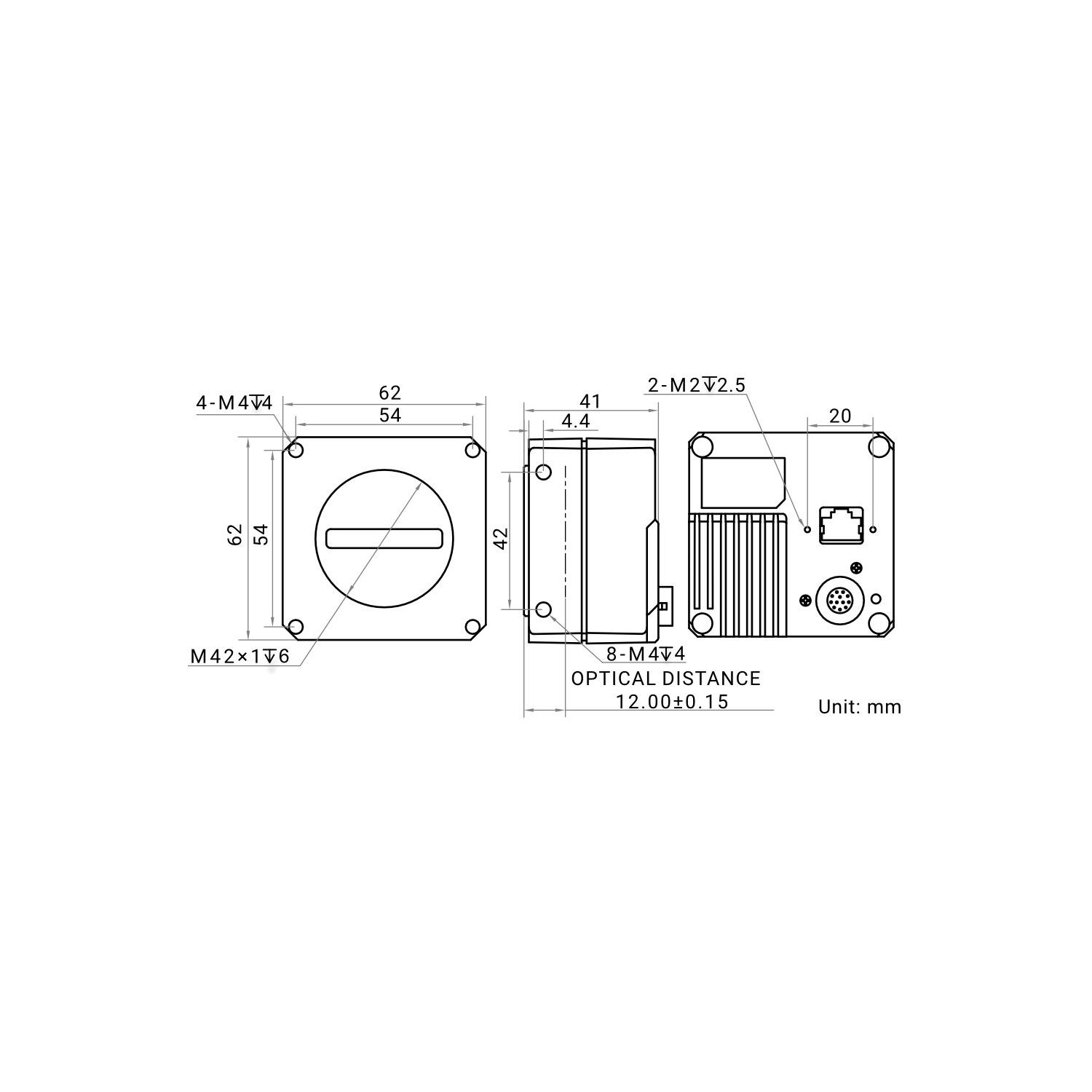 | Mechanical | Lens mount | M42 *1.0, optical back focal length: 12 mm (0.5″), applicable to F-mount, C-mount and others via lens adapter |