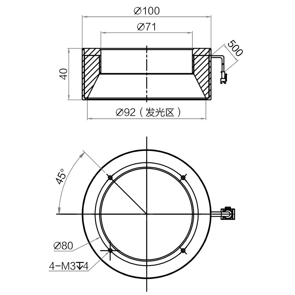Luminous surface outer diameterØ92 mm