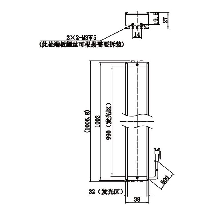 80.8W, 1002x38x27mm, 6000 ~ 7000K, Area 990x32mm, Bar, LED Rows: 6, White