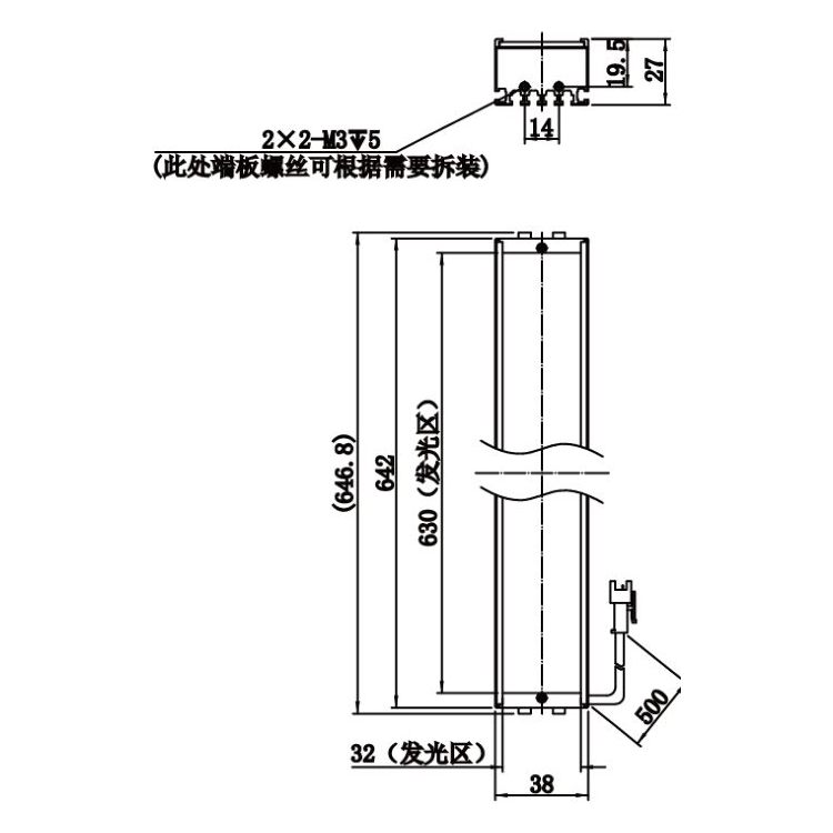| Light-emitting area diameter | 630 mm × 32 mm | |