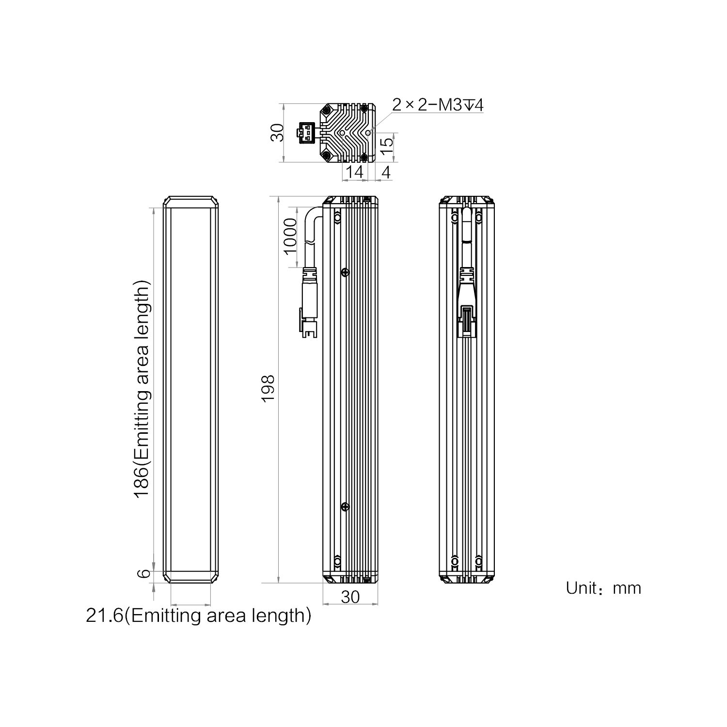 | Emitting area dimension | 186 mm × 21.6 mm | |