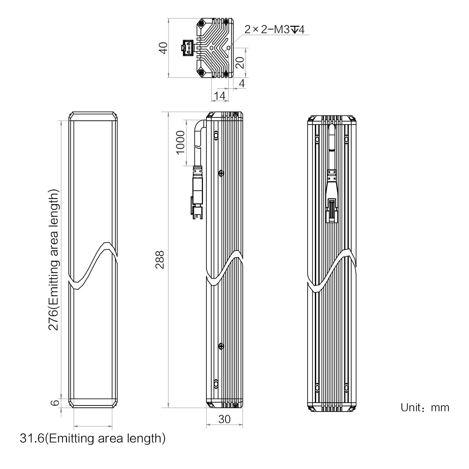 | Emitting area dimension | 276 mm × 31.6 mm | |