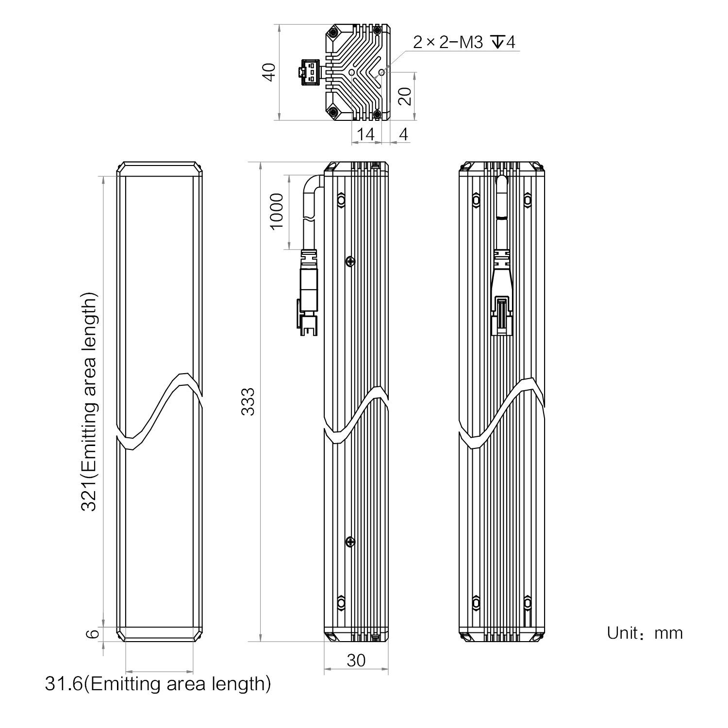 | Emitting area dimension | 321 mm × 31.6 mm | |