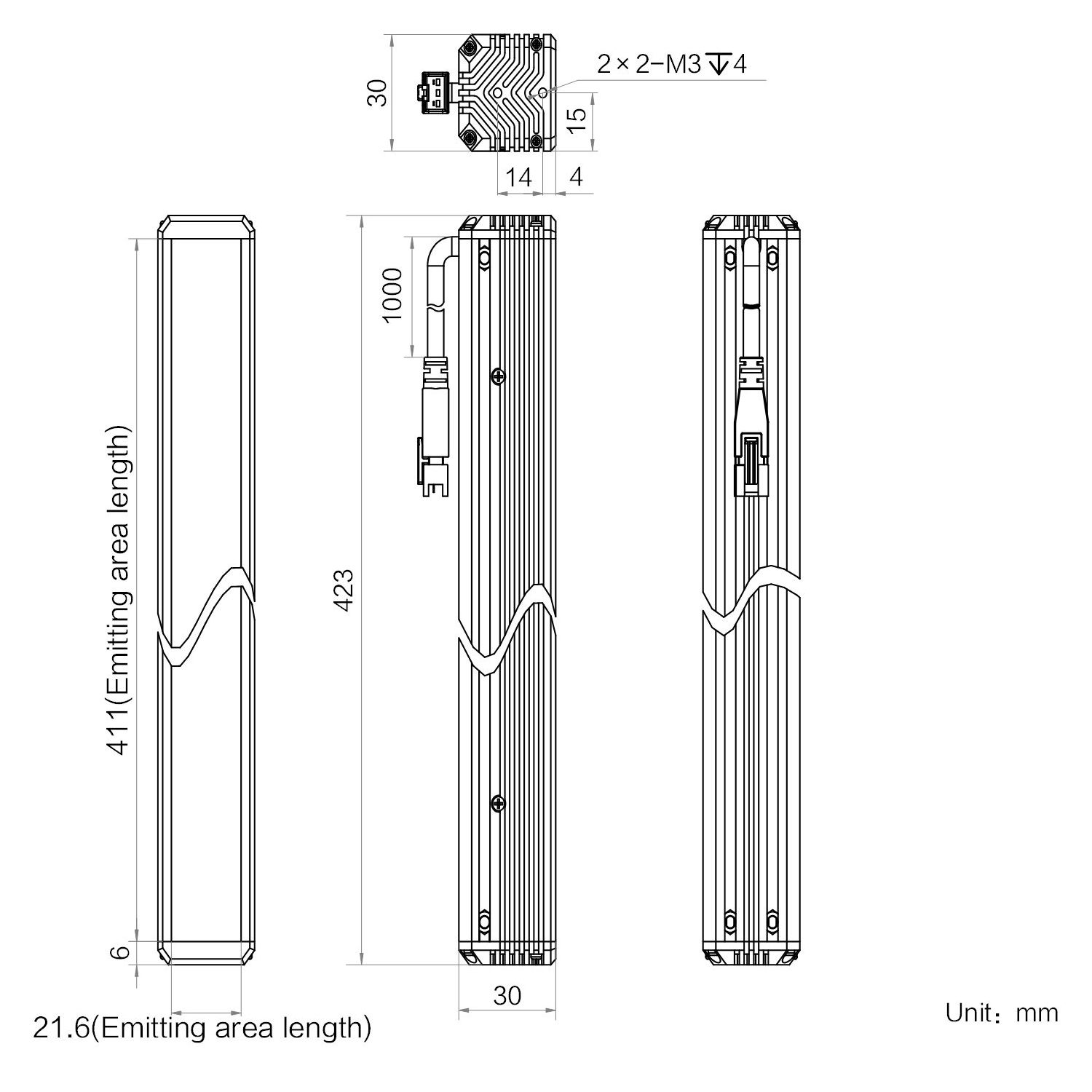 | Emitting area dimension | 411 mm × 21.6 mm | |