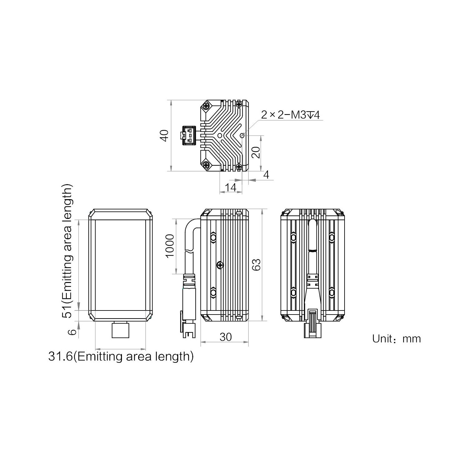 | Emitting area dimension | 51 mm × 31.6 mm | |