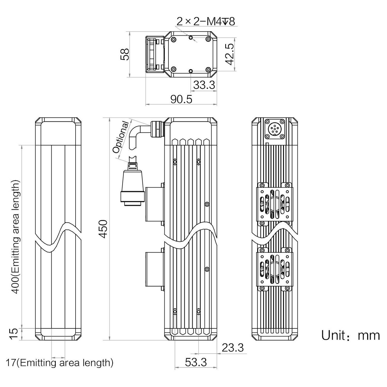 Emitting area dimensions400 mm × 17 mm