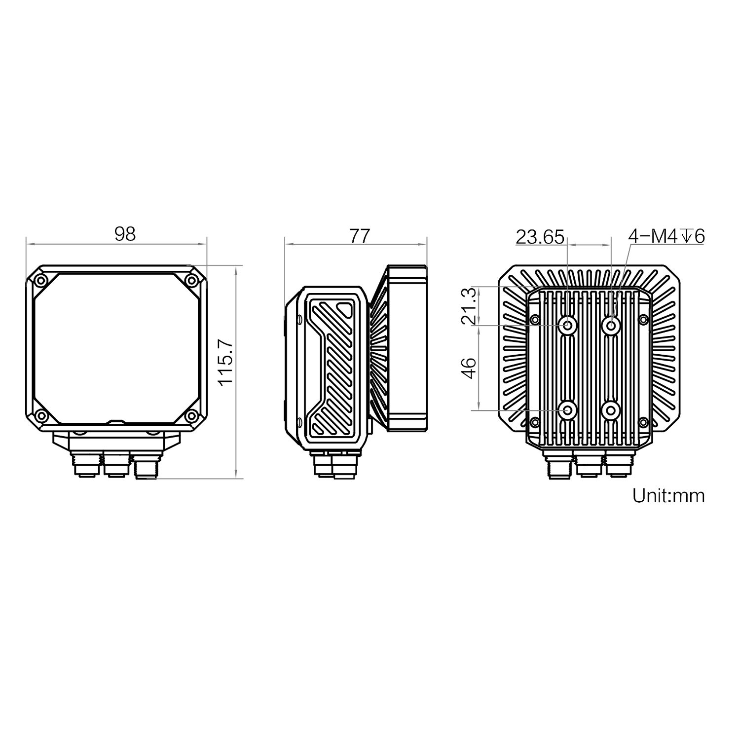 | Digital I/O | 17-pin M12 male connector provides power and I/O, providing opto-isolated input × 2 (Line 0/1), opto-isolated output × 2 (Line 4/5), configurable non-isolated input/output × 2 (Line 2/3), RS-232 × 1, light source output (max. 30 W) × 1 | |