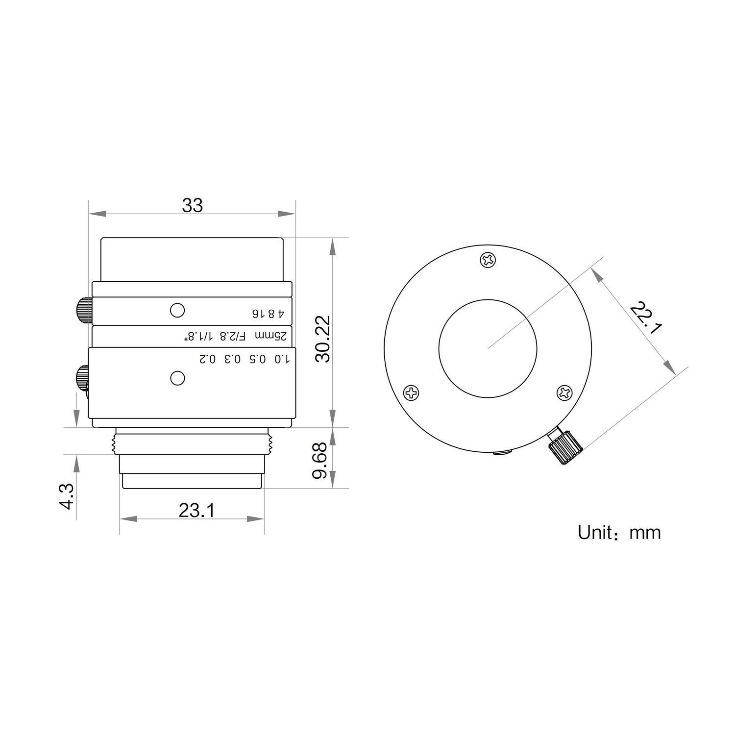 25mm, F2.8 ~ F16, Ø 9mm (1/1.8''), C-Mount