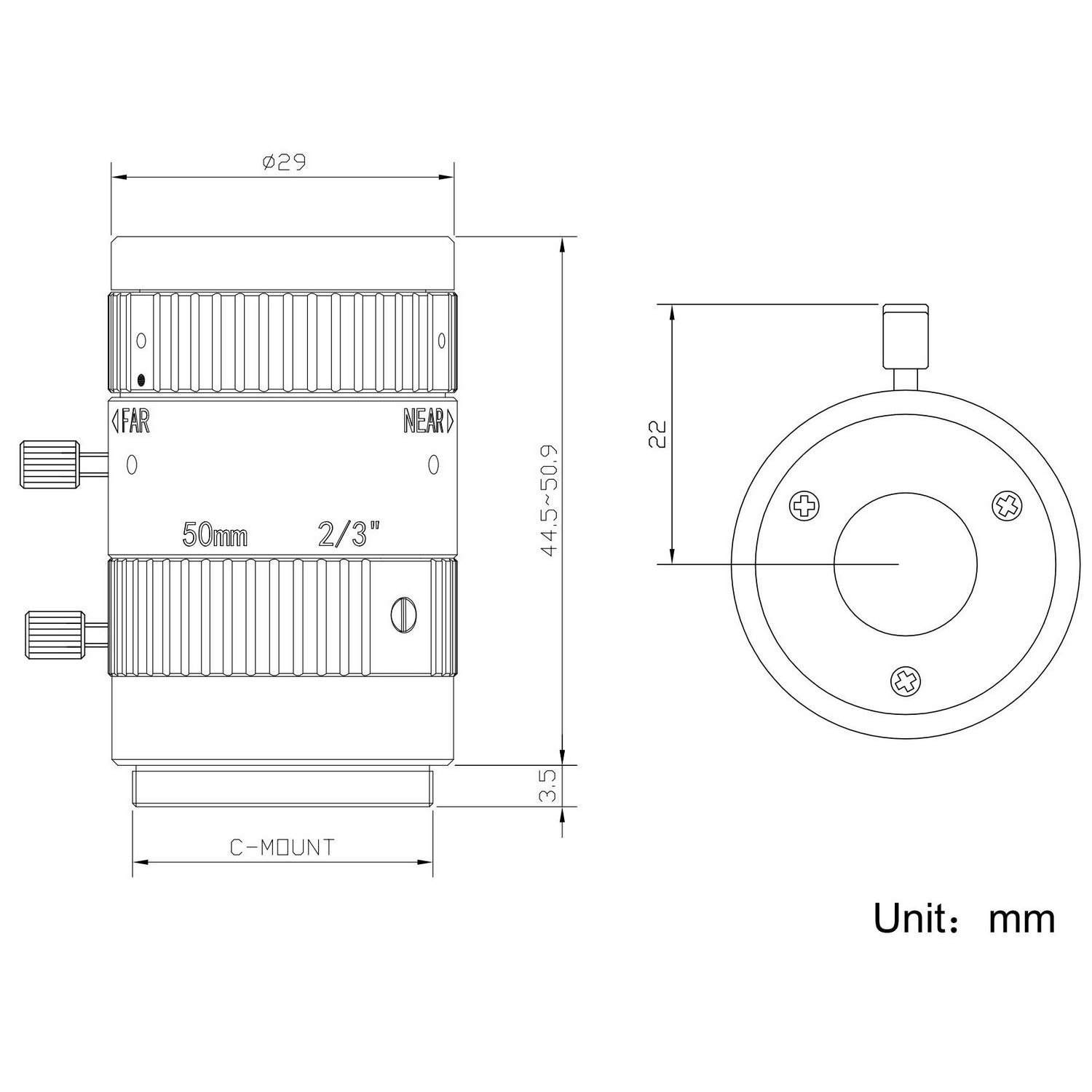 | Type | 50mm, F2.8, 2/3″, 5MP Lens, C-Mount | |
