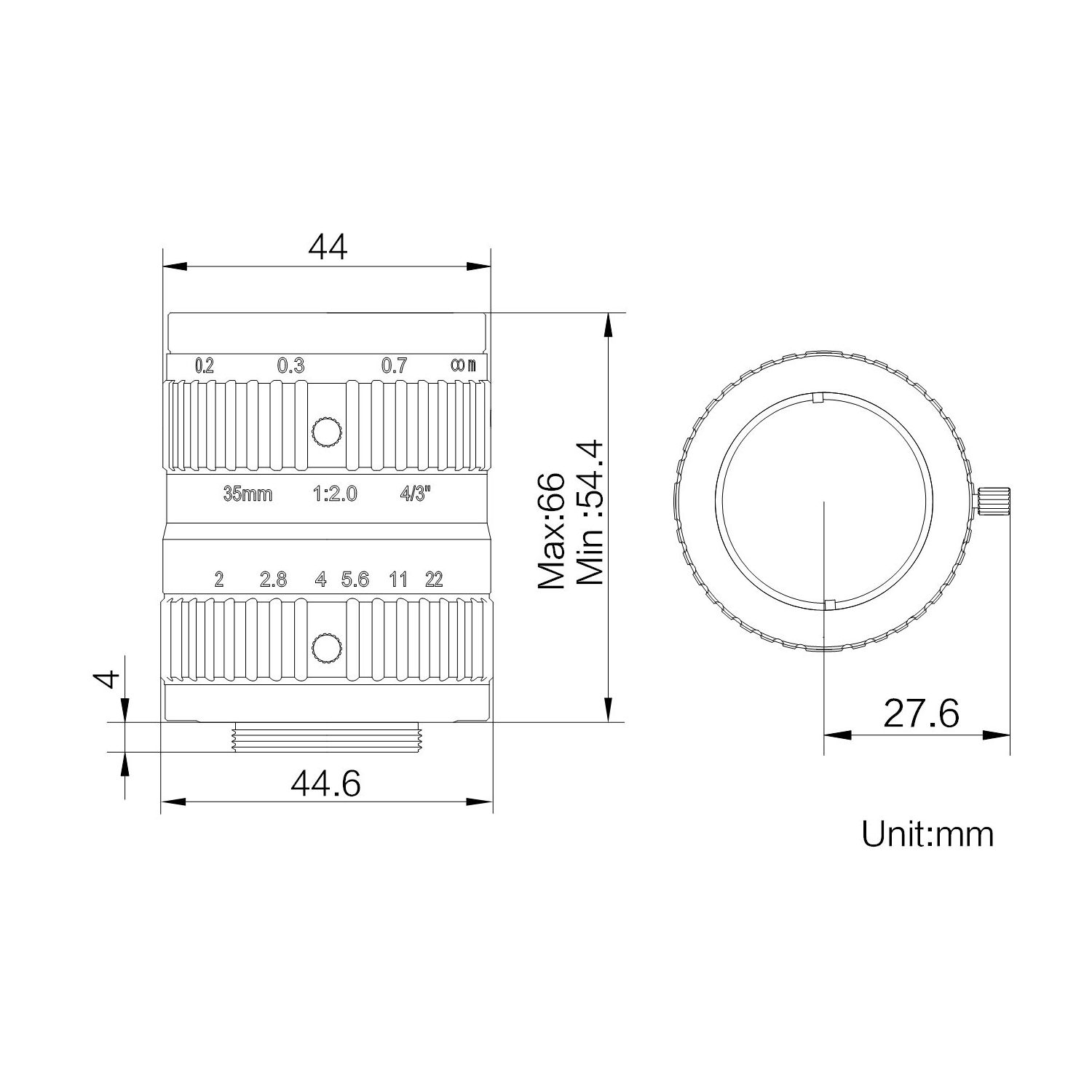 35mm, F2.0 ~ F22, Ø 23mm (4/3''), C-Mount