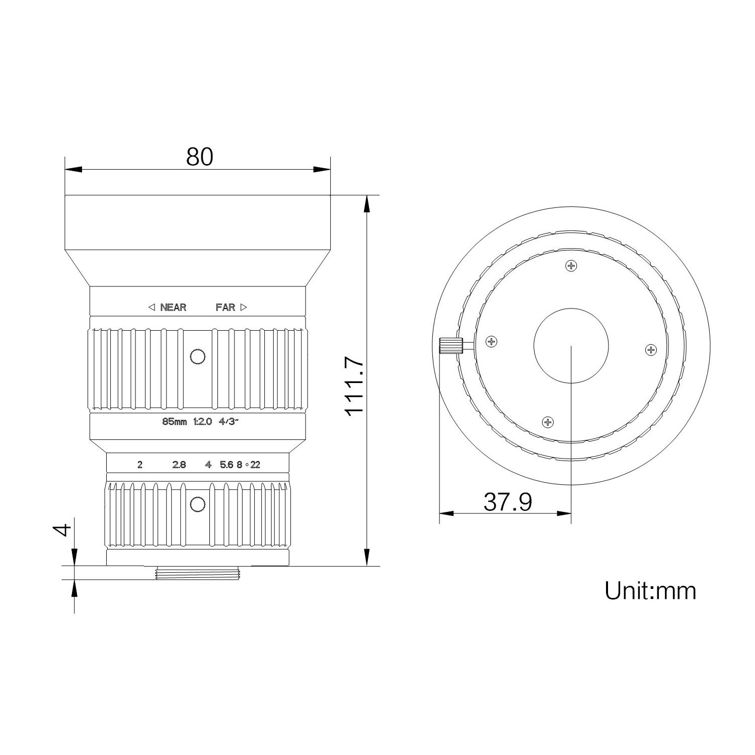 | Type | 85mm, F2.0, 4/3″, 10MP Lens, C-Mount | |